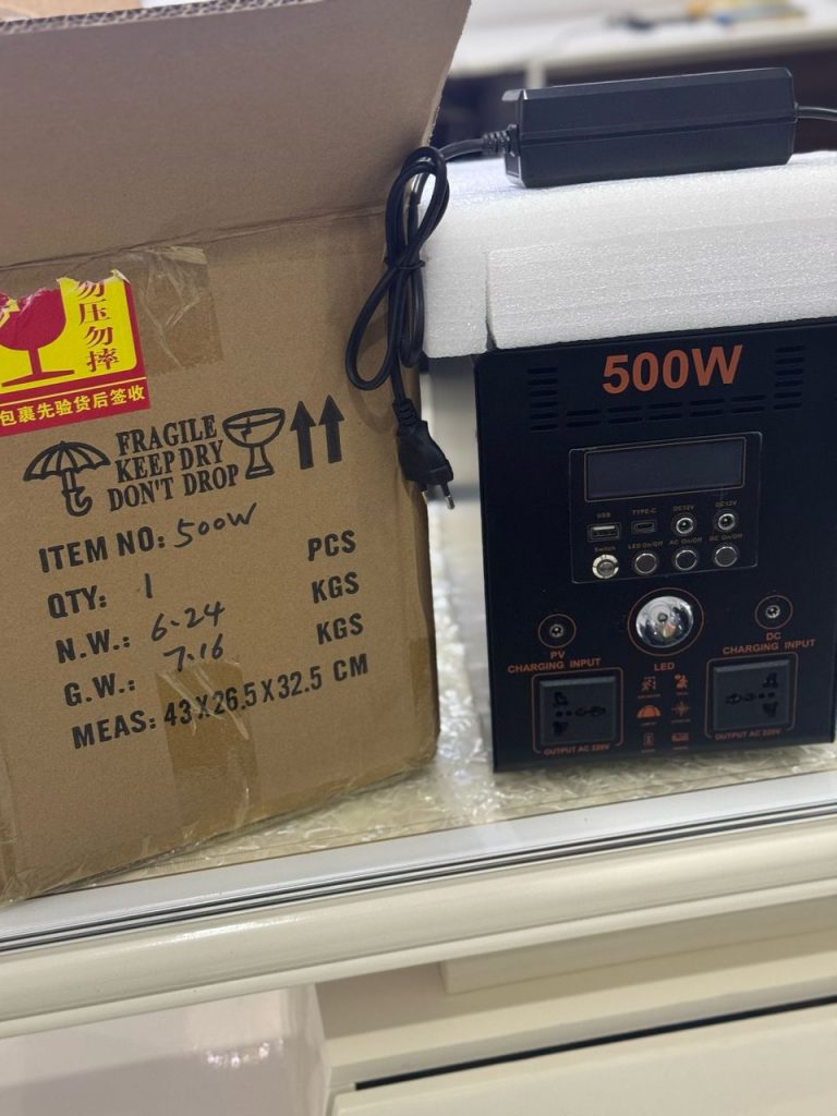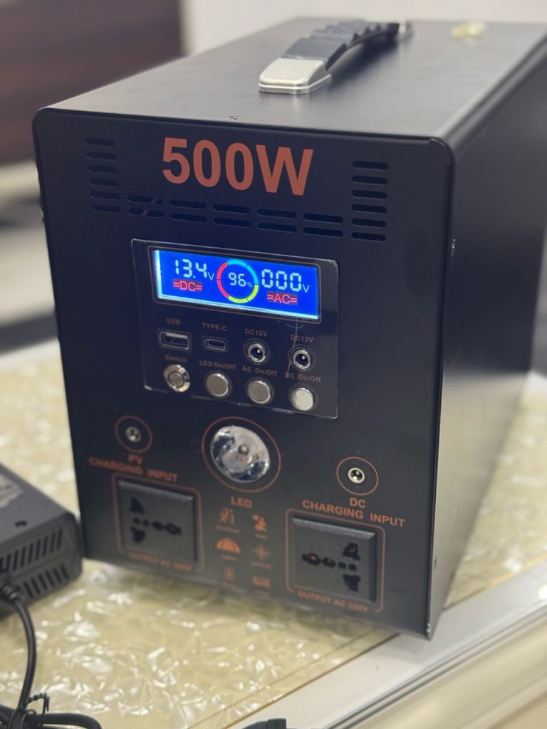 Our 500Watts Solar Generator Is Specifically Designed To Power 42″ Television, Fan, Laptop, Decoder, sound System, Solar Bulbs, Phones, Table, Power Bank, POS…