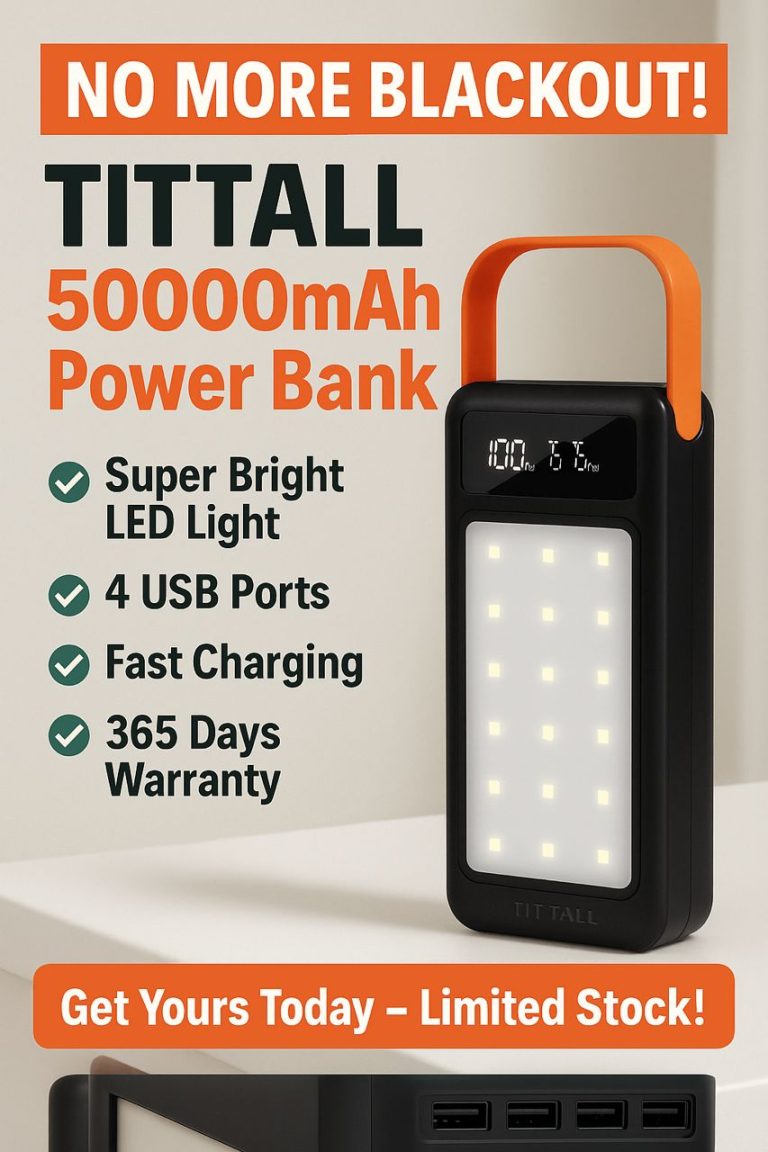 Stay charged anywhere with the Tititall 50,000mAh Power Bank โ the ultimate power solution for travelers, outdoor enthusiasts, and heavy phone users. No more searching for outlets or forgetting cables!